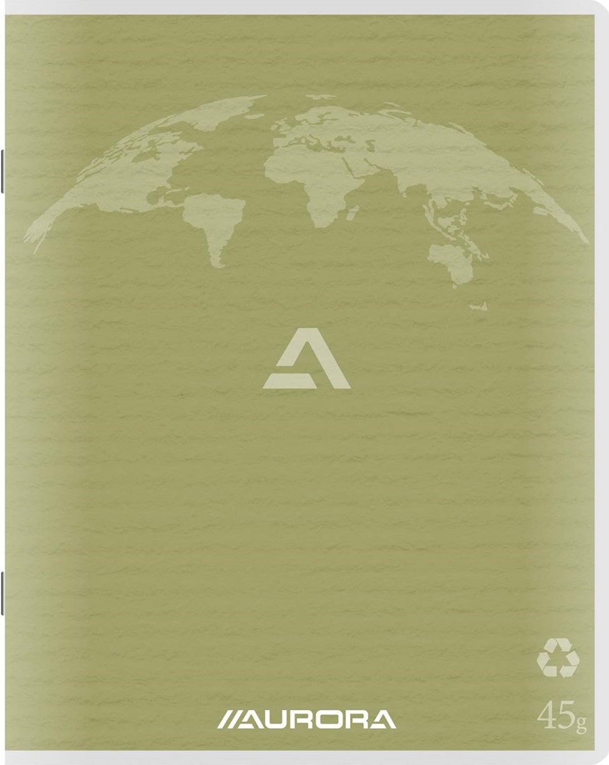 Specificaties Aurora Writing 45 kladschrift uit gerecycleerd papier, 200 bladzijden, gelijnd, mosgroen