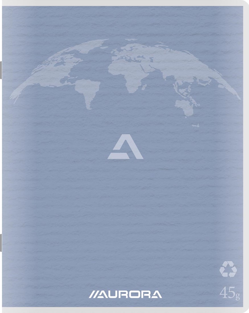 Specificaties Aurora Writing 45 kladschrift uit gerycleerd papier, 200 bladzijden, geruit 5 mm, lichtblauw