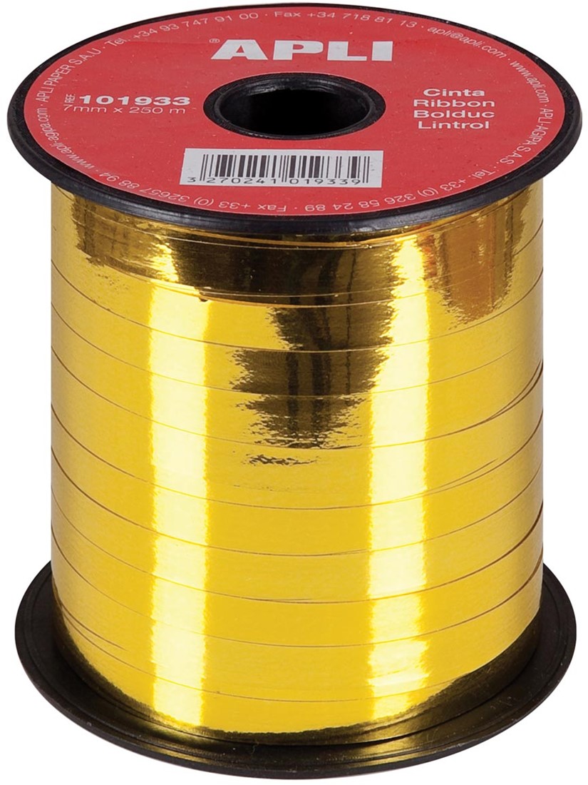 Specificaties Apli sierlint 7 mm x 250 m, goud