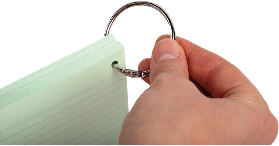 Uit karton van 205 g/m² Gelijnd Pak van 50 stuks Geassorteerde kleuren (wit, roze, blauw, groen, geel; 1 kleur per pak van 50 stuks) Inclusief 1 verwijderbare ring