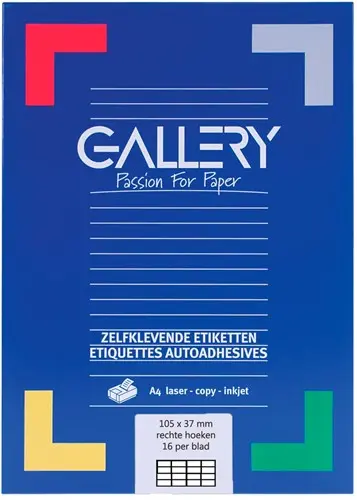 Stel een vraag over Gallery witte etiketten ft 105 x 37 mm (b x h), rechte hoeken, doos van 1.600 etiketten