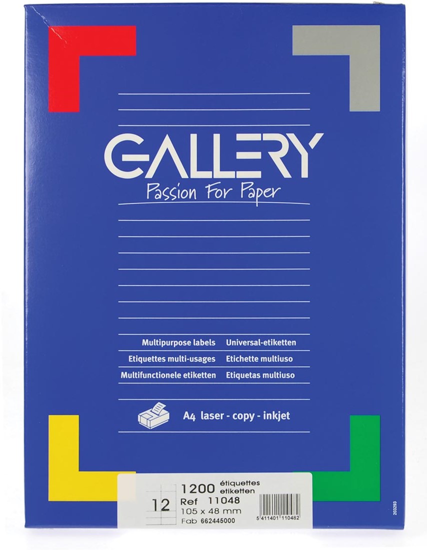 Stel een vraag over Gallery witte etiketten ft 105 x 48 mm (b x h), rechte hoeken, doos van 1.200 etiketten