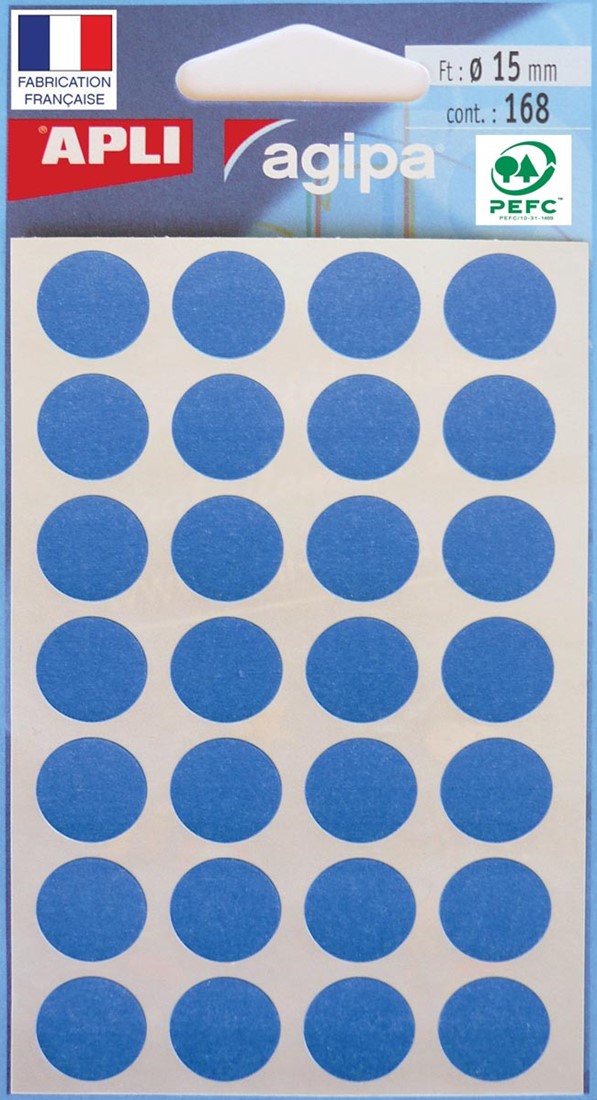 Stel een vraag over Agipa ronde etiketten in etui diameter 15 mm, blauw, 168 stuks, 28 per blad