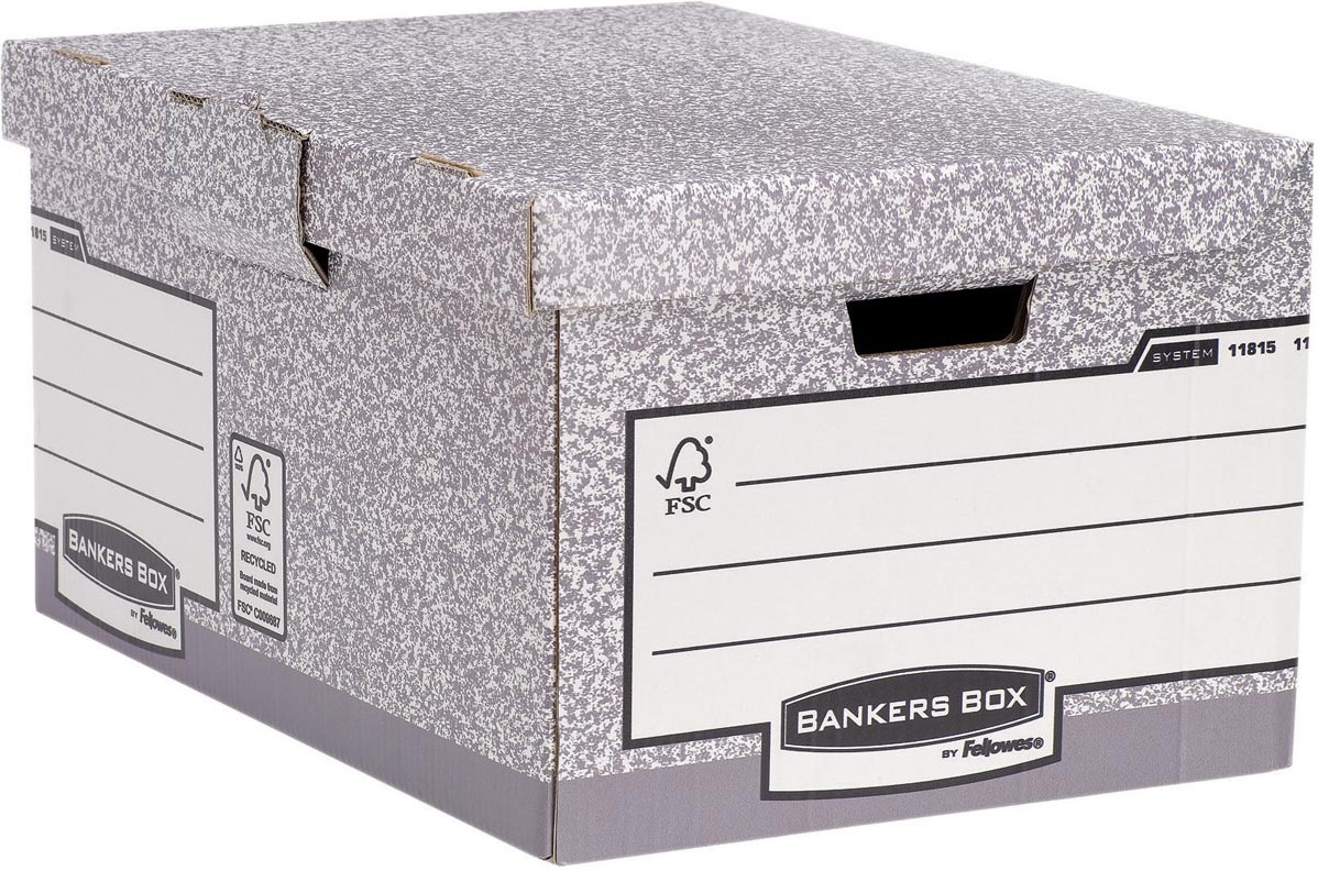 Fastfold voor automatisch opzetten Dubbele laag karton bij de eindpanelen en op de bodem Aangehecht deksel met sluiting voor extra veiligheid Voor System ordners of 6 x 8 cm / 4 x 12 cm transferarchiefdozen Binnenft: 37,8 x 29,3 x 54,5 cm (b x h x d) Tot 5 units hoog stapelbaar om ruimte te besparen Uit 100 % gerecycleerd karton. FSC gecertificeerd