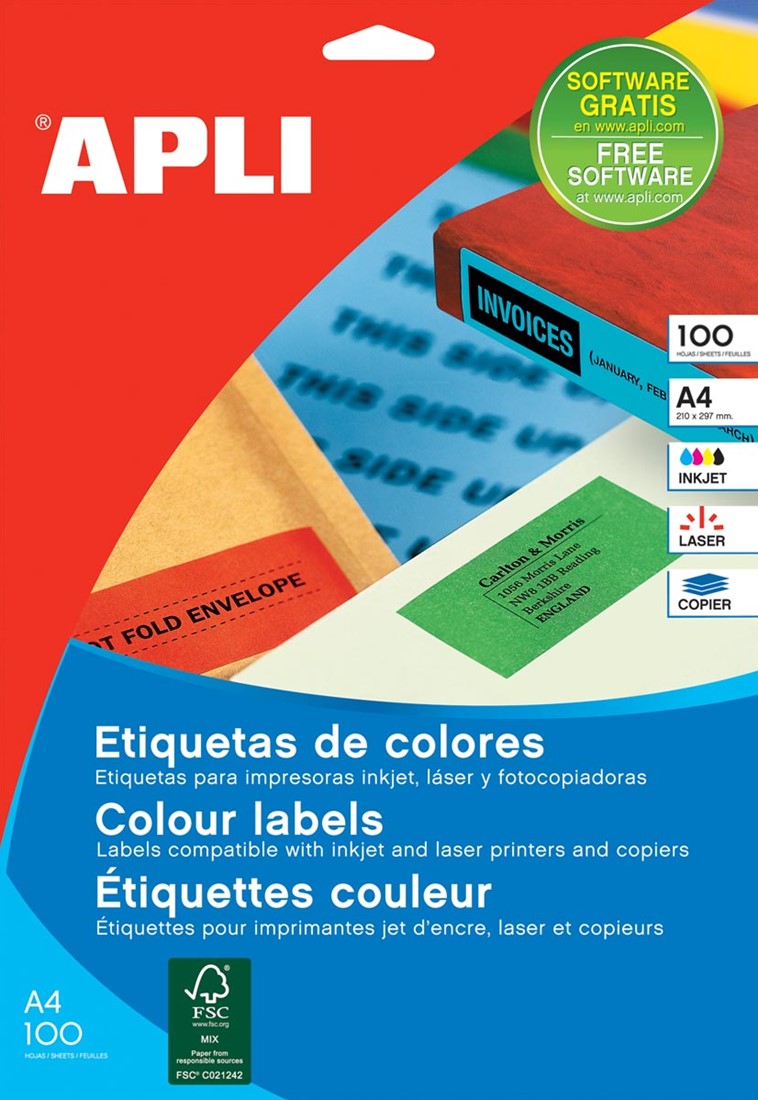 Specificaties Apli Gekleurde etiketten ft 210 x 297 mm (b x h), geel, 100 stuks, 1 per blad