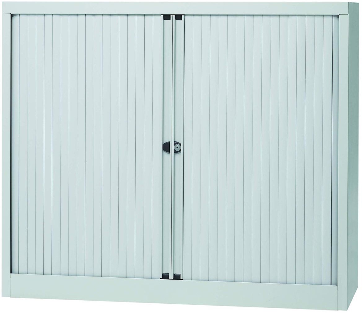 Artikelomschrijving Bisley roldeurkast, ft 103 x 120 x 43 cm (h x b x d), 2 legborden, lichtgrijs