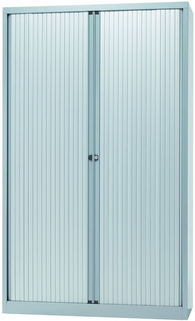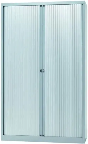 Artikelomschrijving Bisley roldeurkast, ft 198 x 120 x 43 cm (h x b x d), 4 legborden, zilverkleurig