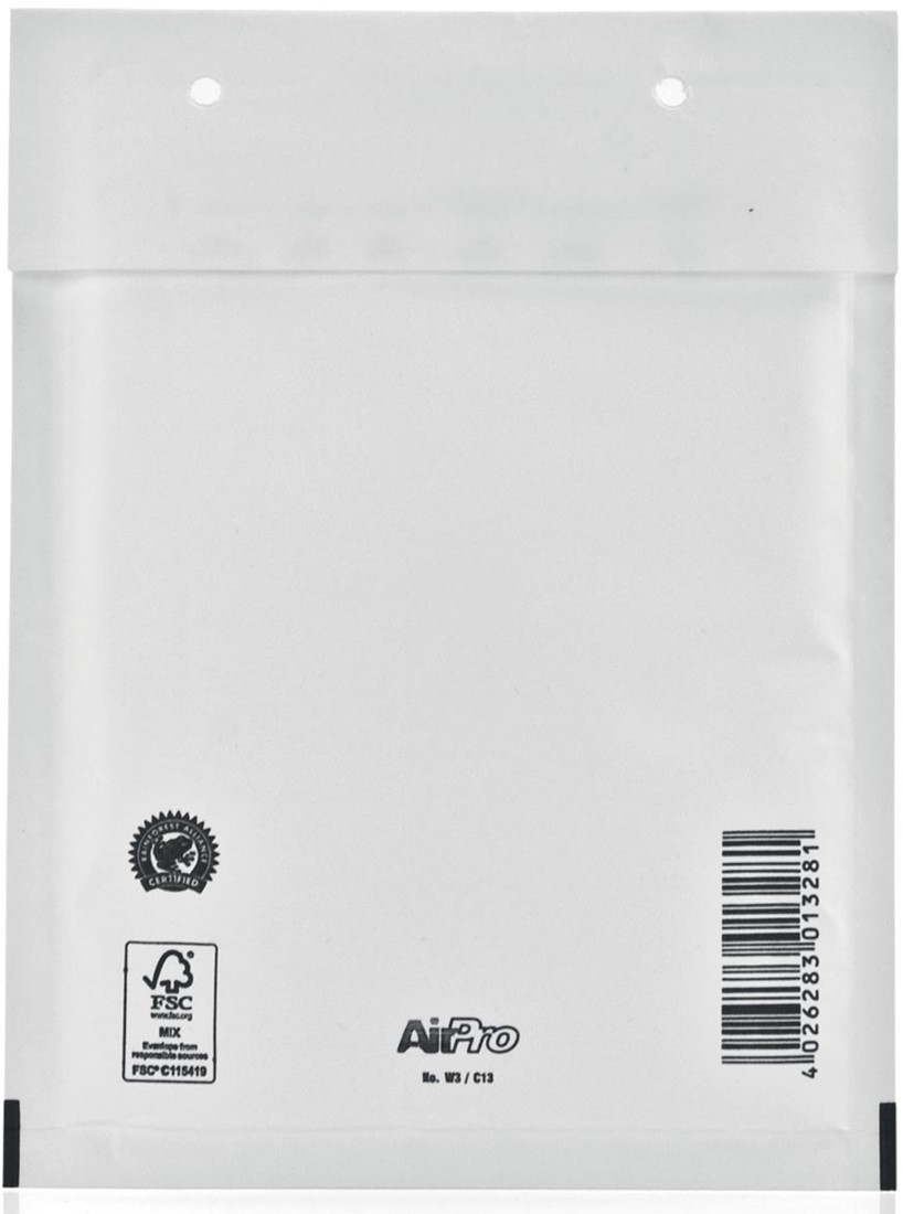 Uit wit kraftpapier van 80 g/m². Zonder venster. Met stripsluiting. Met luchtkussenfolie. FSC-gecertificeerd. Vermelde formaten zijn binnenformaten.