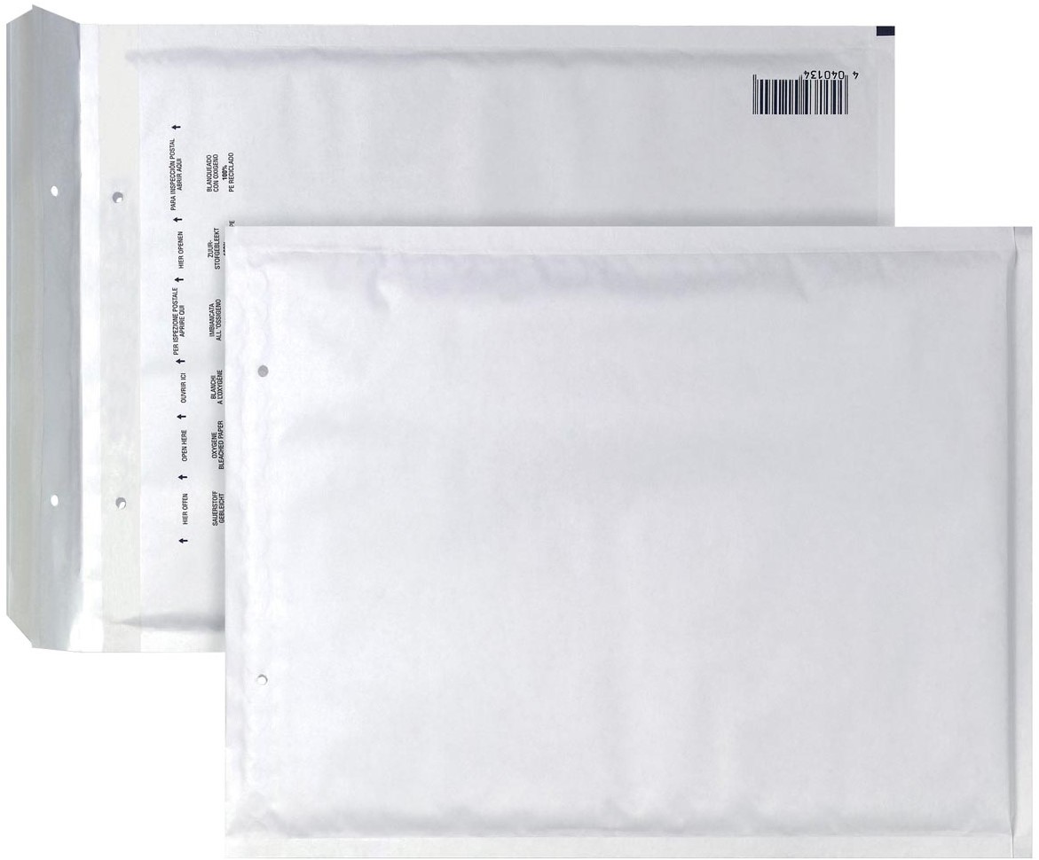 Uit wit kraftpapier van 80 g/m². Zonder venster. Met stripsluiting. Met luchtkussenfolie. FSC-gecertificeerd. Vermelde formaten zijn binnenformaten.