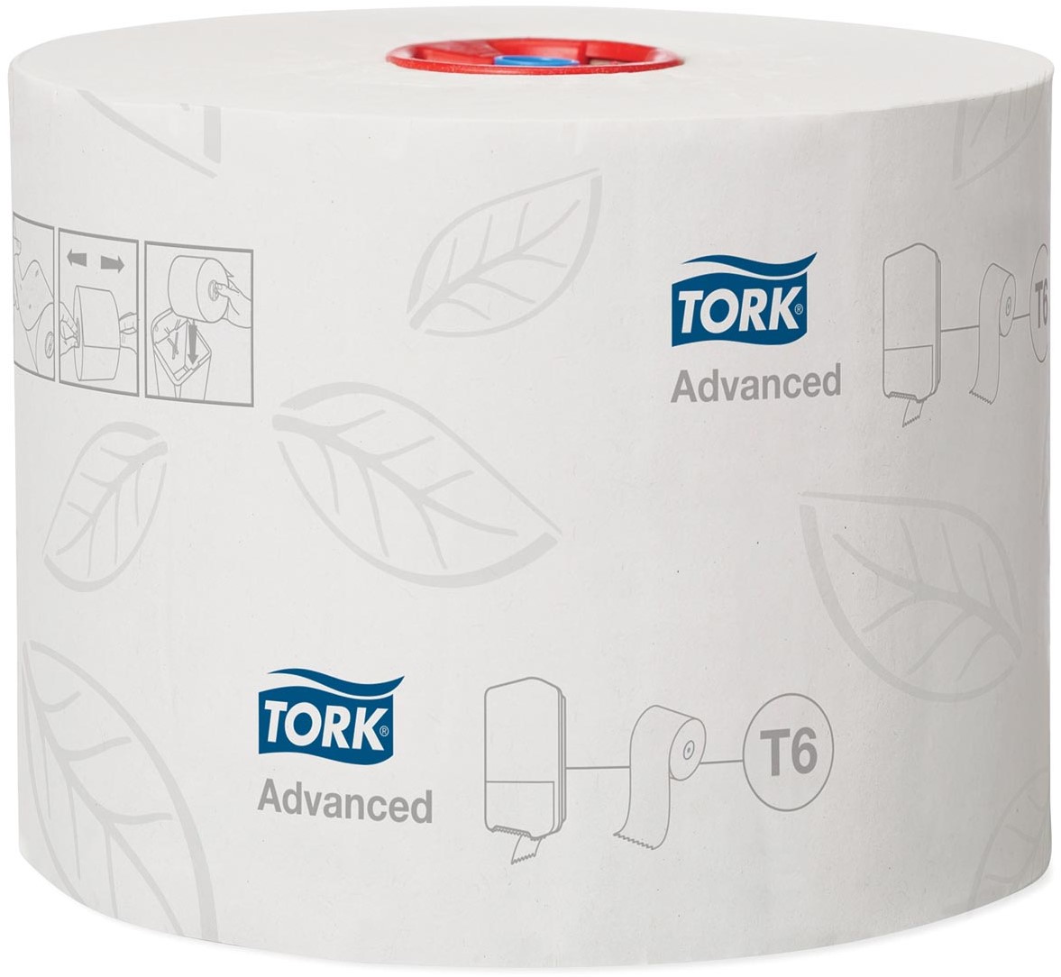 "Leaf"-bedrukking. Rolbreedte: 9,9 cm, roldiameter: 13,1 cm. Kleur: wit. Systeem: T6. Recycled. Pak van 27 rollen Certificaat: FSC Mix - C008266, EU Ecolabel