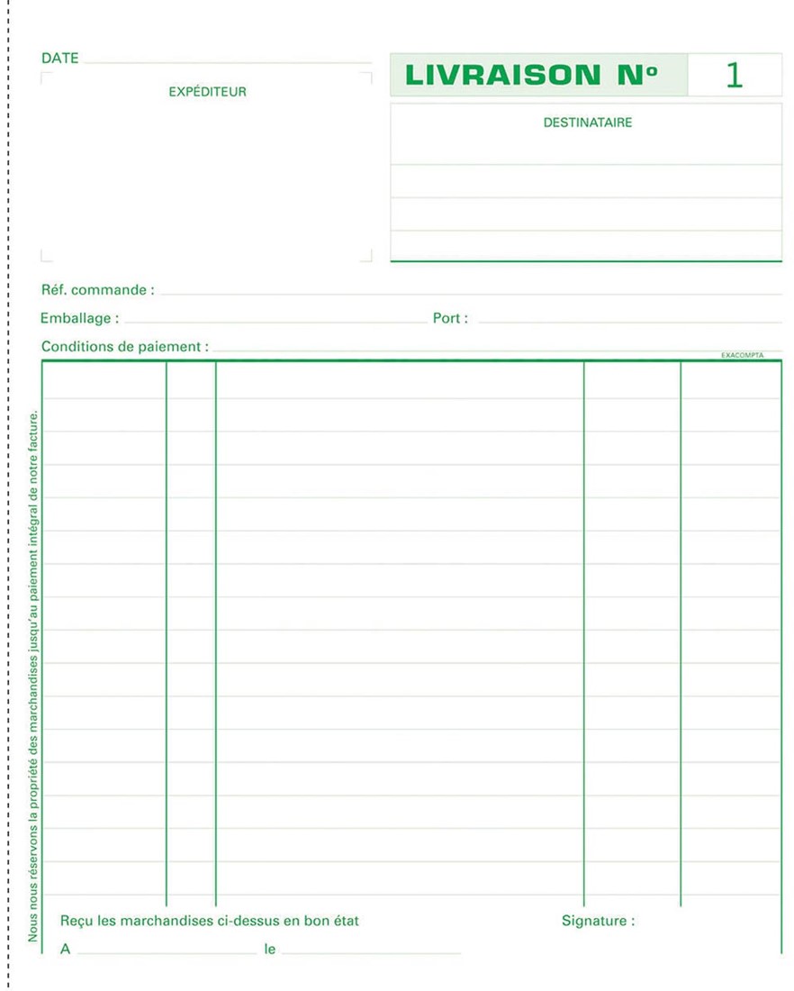 Boek met afleveringsbonnen met behoud van een kopie. Voorzien van een eigendomsvoorbehoud clausule. De kwaliteit van het zelfkopiërend papier staat garant voor een nette en snelle kopie met een uitstekende transcriptie van het origineel. Dank zij het gebruik van een lijm van superieure kwaliteit en een verstevigde rug, zijn de doorschrijfboeken van Exacompta aangepast aan een veelvuldig gebruik, zowel op kantoor als buiten. 100% Frans fabricaat. Verticaal. Voor ft 21 x 18 cm. FSC-gecertificeerd.