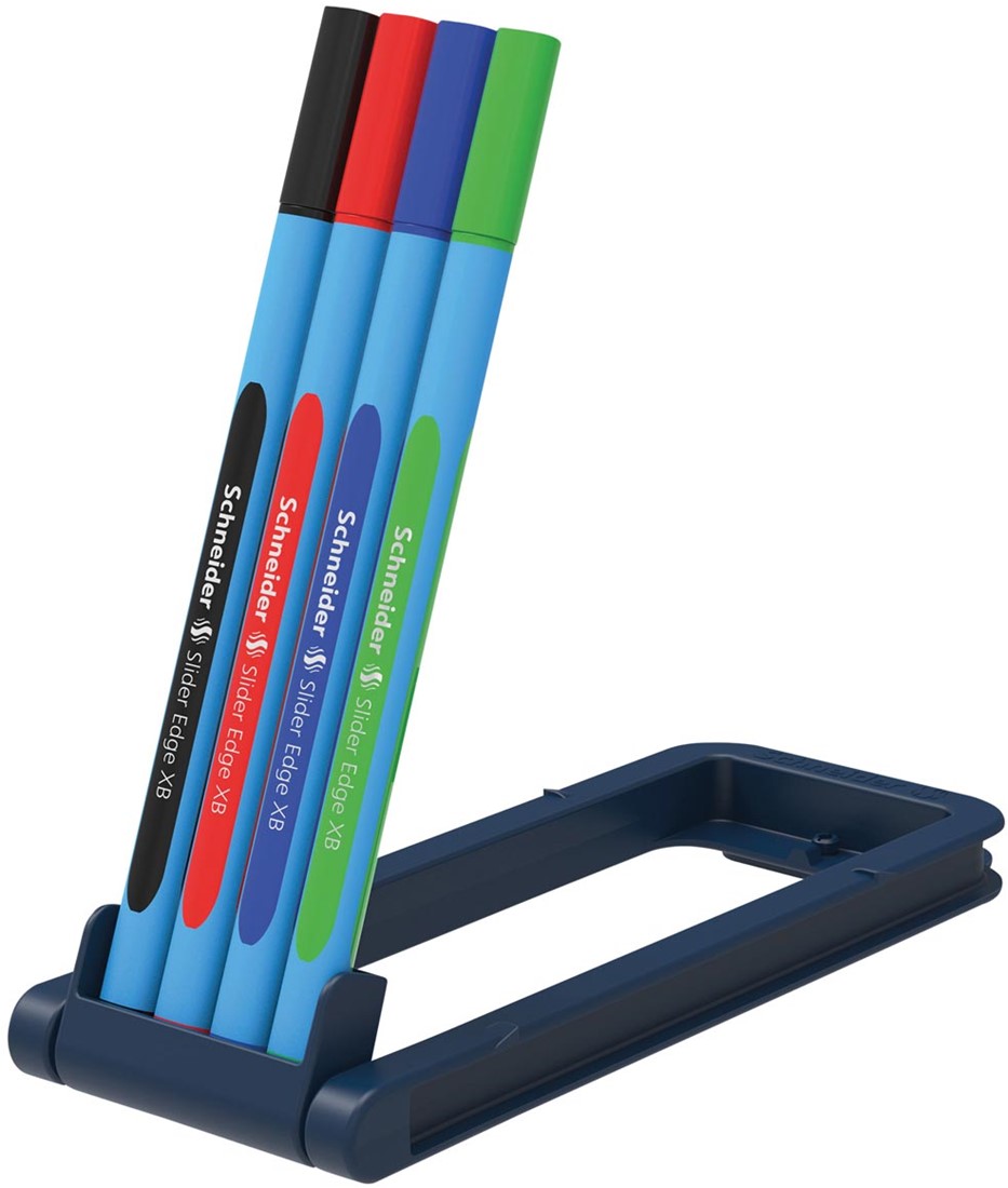 Artikelomschrijving Schneider balpen Slider Edge, extra breed, geassorteerde kleuren, opstelbare doos van 4 stuks