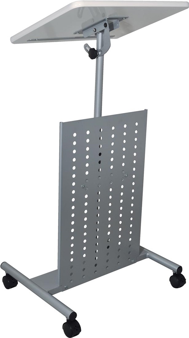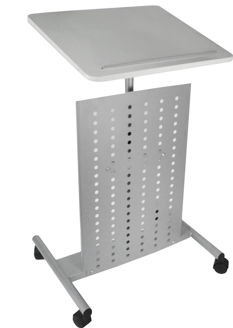 Uit MDF Eenvoudig in hoogte te verstellen Het plateau is in te stellen in hoeken van 0 tot 60 graden Ft basis: 41,5 x 49 cm (b x d) Ft plateau: 52 x 42,8 x 18 cm (h x b x d) Kleur: grijs