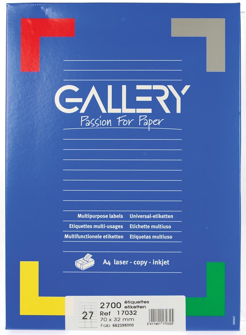 Stel een vraag over Gallery witte etiketten ft 70 x 32 mm (b x h), rechte hoeken, doos van 2.700 etiketten