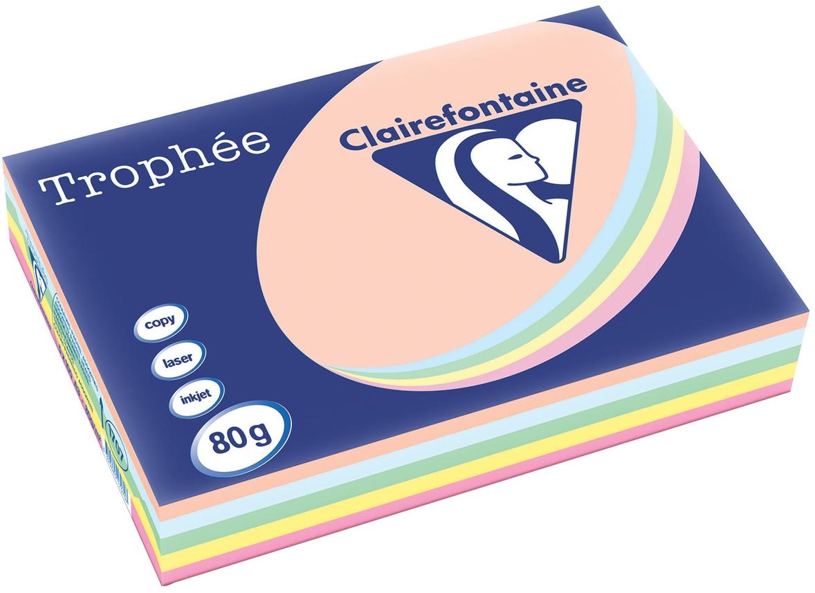 Artikelomschrijving Clairefontaine Trophée Pastel, gekleurd papier, A3, 80 g, 5 x 100 vel, geassorteerde kleuren