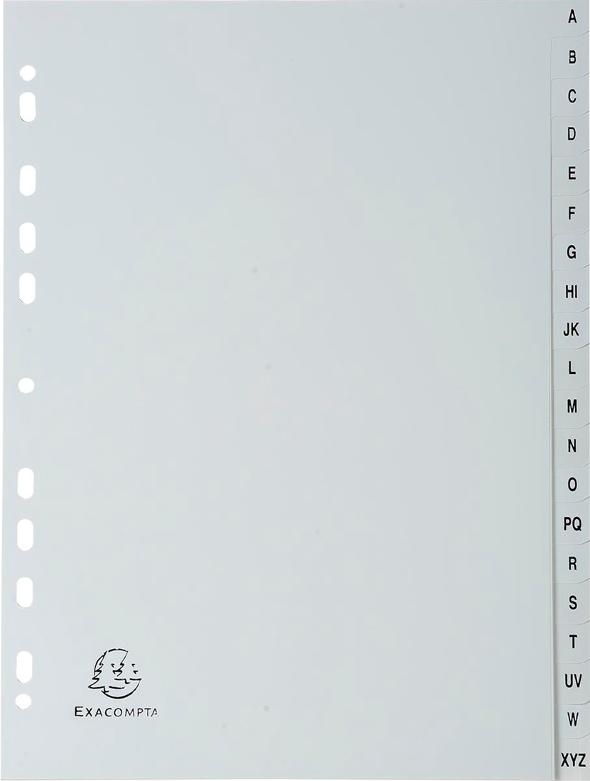 Specificaties Exacompta tabbladen voor ft A4, uit PP, van A tot Z, 20 tabs, grijs