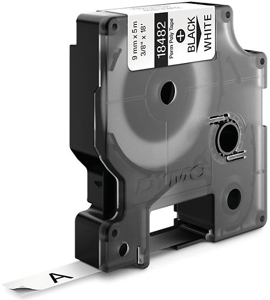 Artikelomschrijving Dymo RHINO permanente polyester tape 9 mm, zwart op wit