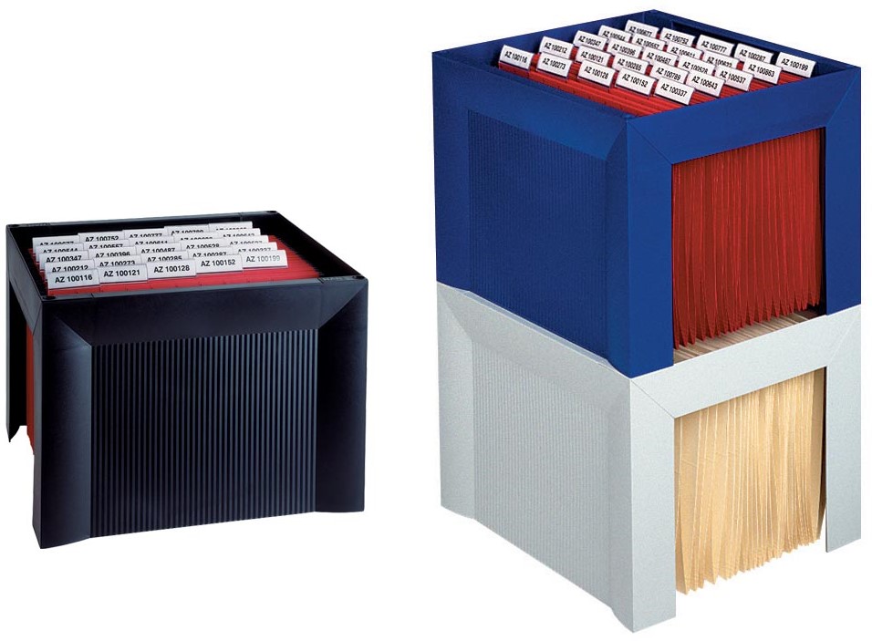 Ft 36 x 32 x 26,4 cm. Functioneel, stabiel en stapelbaar. Voor max. 35 hangmappen ft A4. Voor- en achterzijde zijn afgesloten. Plat geleverd. Met antislipvoetjes. Voor gebruik van hangmappen met tussenafstand van 330 mm.