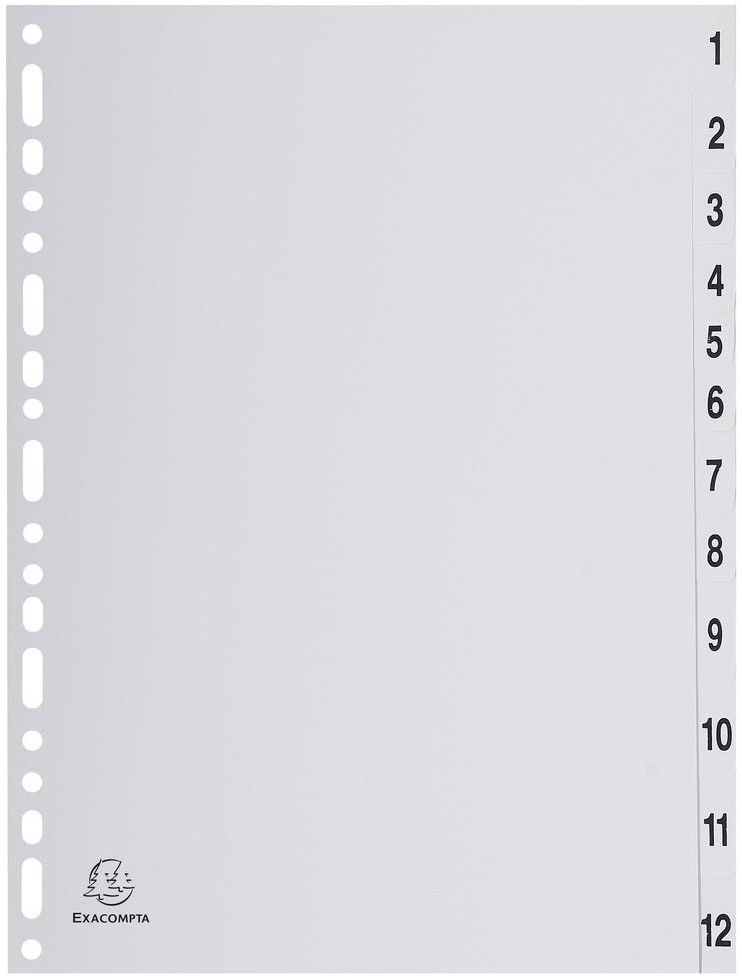 Artikelomschrijving Exacompta tabbladen numeriek voor ft A4, uit PP, grijs, 12 tabs