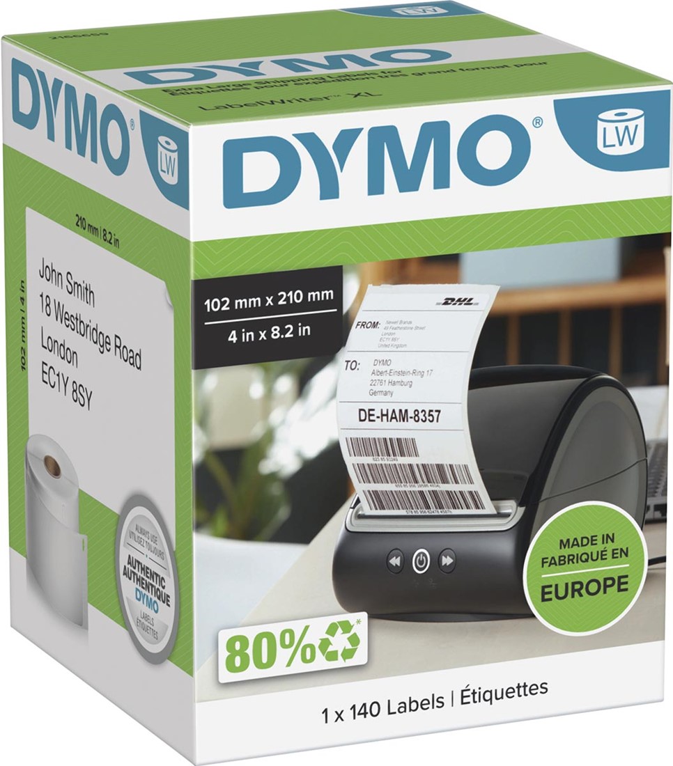 Artikelomschrijving Dymo etiketten LabelWriter ft 102 x 210 mm (DHL), wit, 140 etiketten