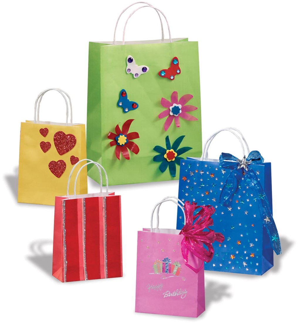 Uit kraftpapier van 110-125 g/m². Met 2 handvatten. Geassorteerde kleuren.