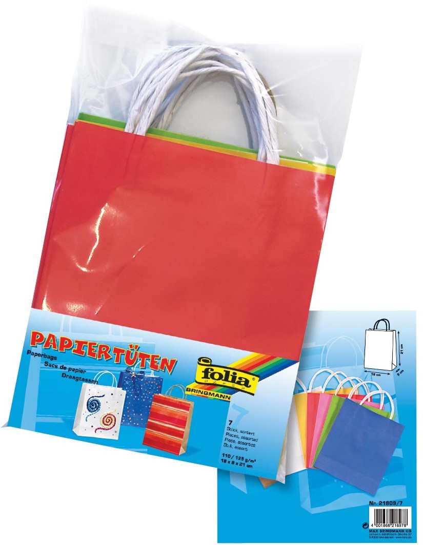Artikelomschrijving Folia papieren kraft zak, 110-125 g/m², geassorteerde kleuren, pak van 7 stuks