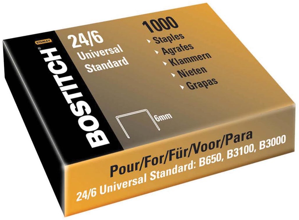 Artikelomschrijving Bostitch nietjes 24-6-5MGAL (6 mm), koperkleurig, voor B440F, B660, B650, B3100, B202, B2500, B3000, B...