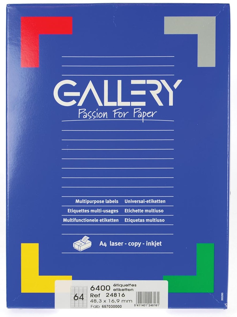 Stel een vraag over Gallery witte etiketten ft 48,3 x 16,9 mm (b x h), ronde hoeken, doos van 6.400 etiketten
