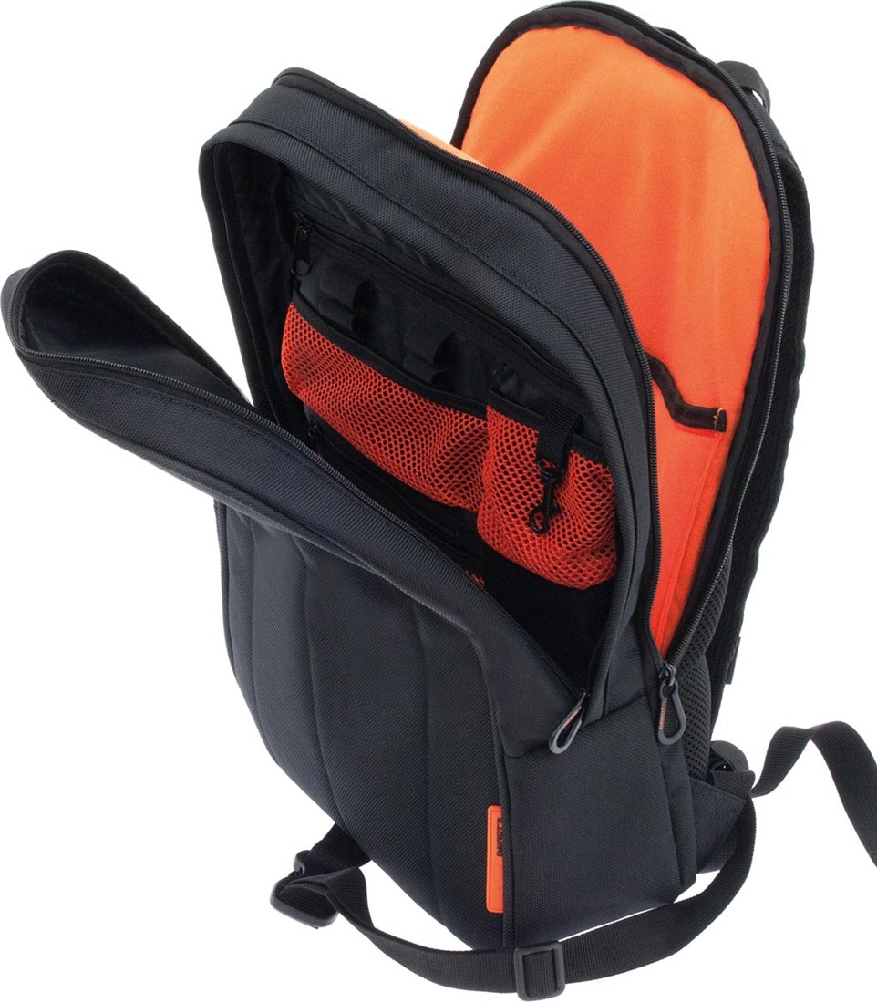 Uit polyester Voor notebooks of tablets tot 10 inch Met 2 compartimenten Ft 30 x 40,5 x 12 cm Kleur: zwart/oranje