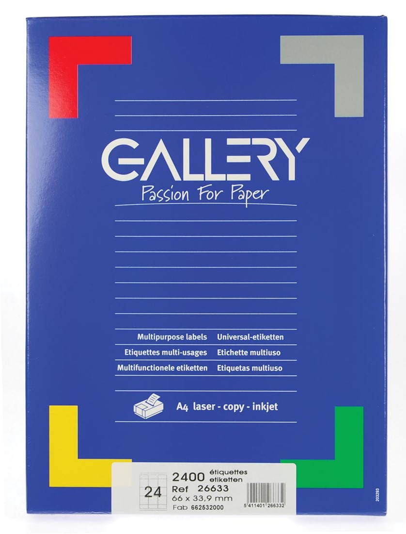 Stel een vraag over Gallery witte etiketten, ft 66 x 33,9, ronde hoeken, doos van 2.400 etiketten