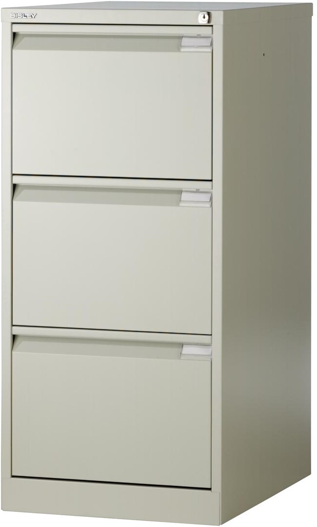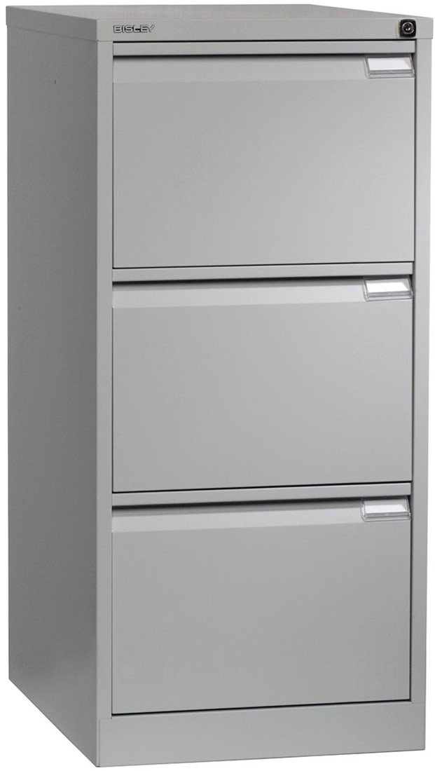 Artikelomschrijving Bisley hangmappenkast, ft 101,6 x 47 x 62,2 cm (h x b x d), 3 laden, grijs