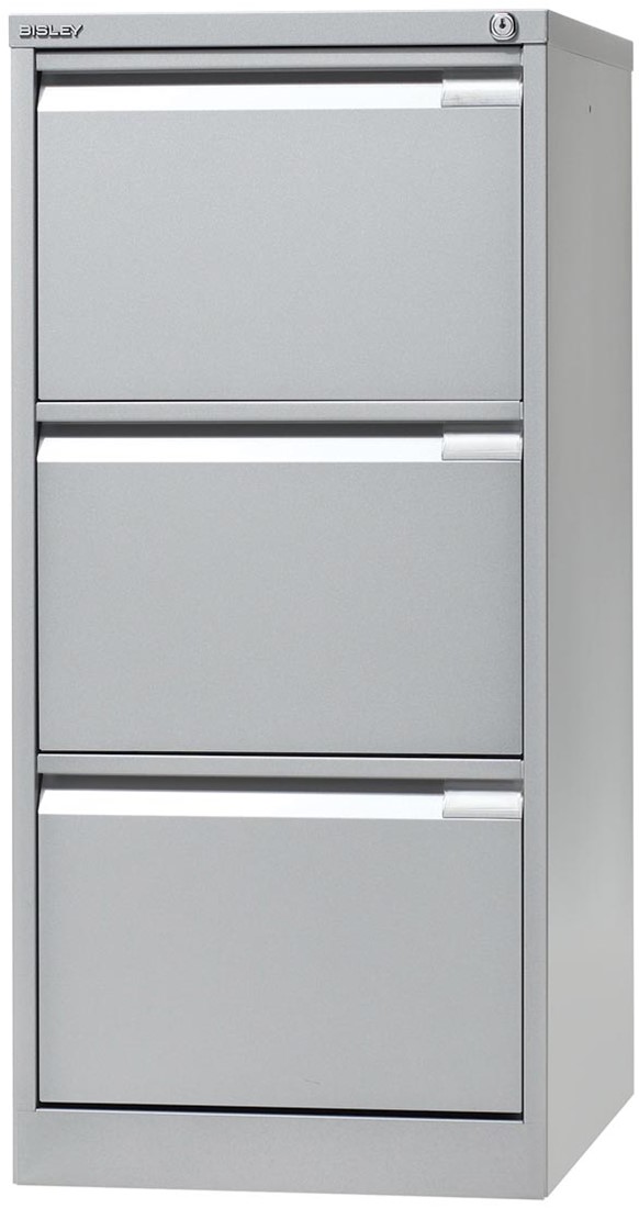 Artikelomschrijving Bisley hangmappenkast, ft 101,6 x 47 x 62,2 cm (h x b x d), 3 laden, zilverkleurig