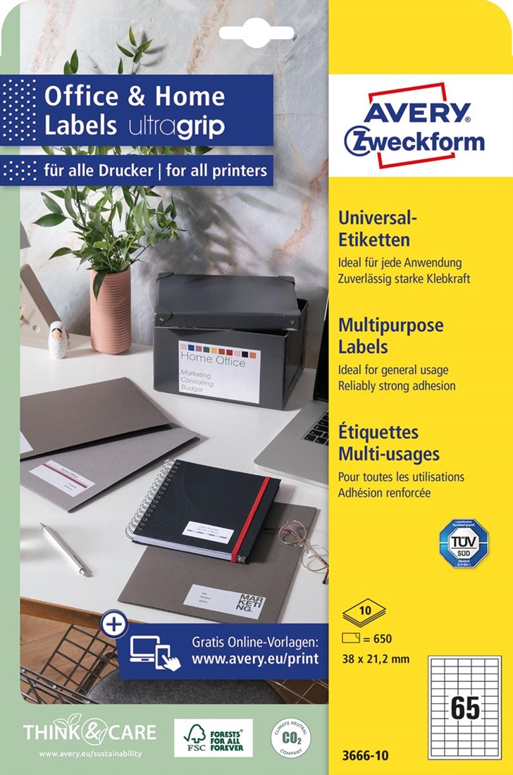 Artikelomschrijving Avery Zweckform universele etiketten, 38 x 21,2 mm, wit, permanent klevend, 650 etiketten, 10 vellen