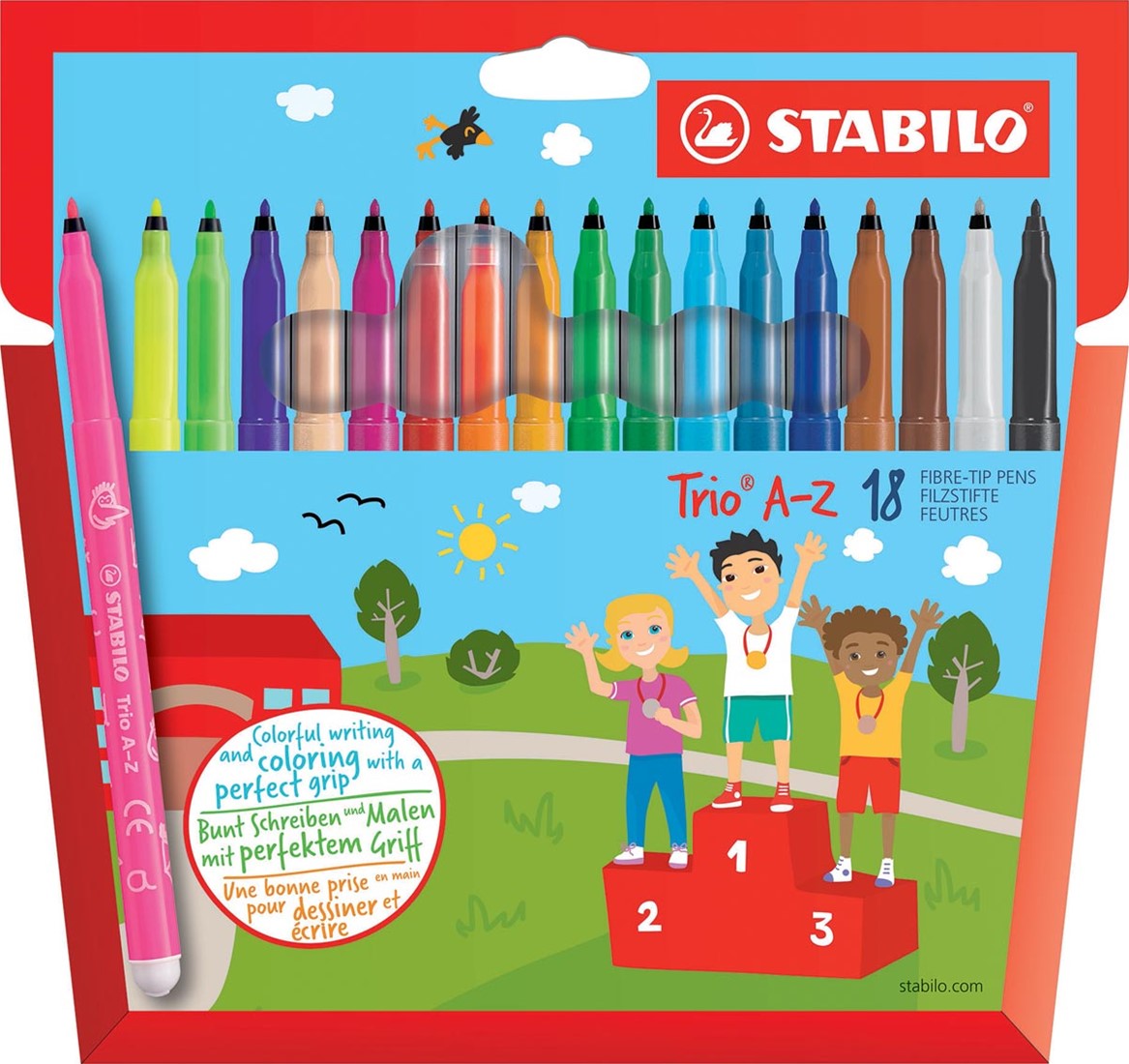 STABILO Trio A-Z viltstift, etui van 12 stuks in geassorteerde kleuren