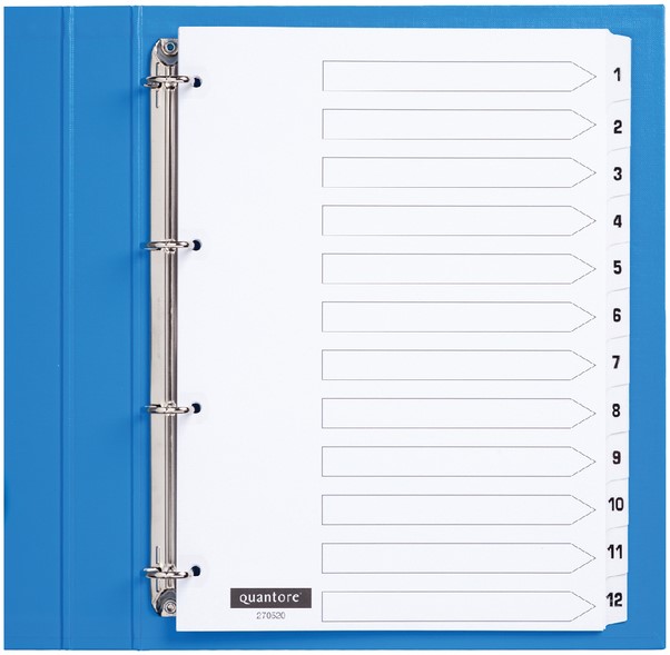 Tabbladen Quantore 23-gaats 1-12 genummerd wit PP