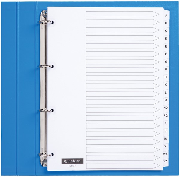 Tabbladen Quantore 4-gaats 20-delig met alfabet wit PP