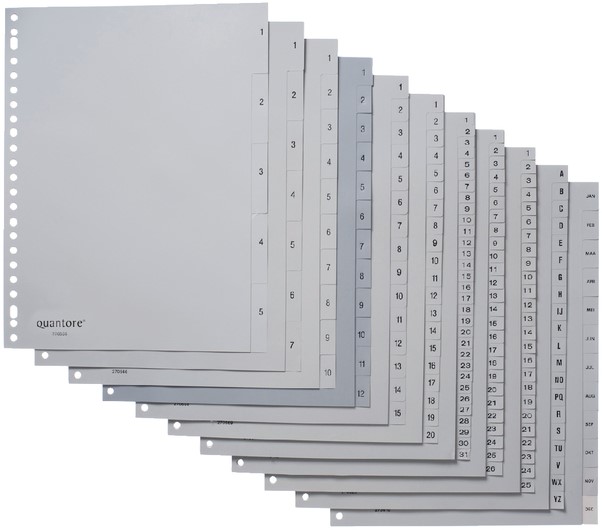Accessoires Tabbladen Quantore 23-gaats 1-10 genummerd grijs PP