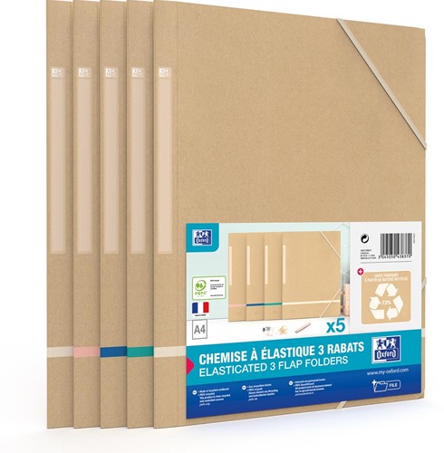 Artikelomschrijving Oxford Touareg elastomap, uit karton, ft A4, naturel en geassorteerde kleuren, pak van 5 stuks