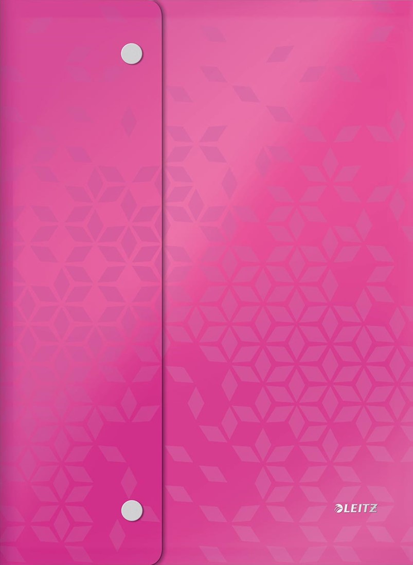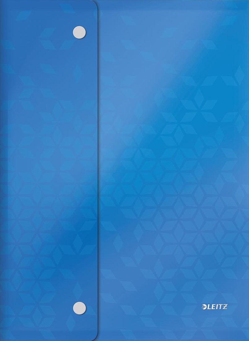 Leitz WOW projectomslag met drukknopen. Stijlvol en modern design in de WOW kleuren, onderstrepen je eigen smaak. Hoge kwaliteit PP projectomslag helpt je om je documenten te organiseren. Opvallende en stijlvolle kleuren: geel, roze, paars, groen, ijsblauwen blauw. PP folie voorzien van gestructureerd design. Past in WOW Leitz 3-klepsmap, sorteermap, vergadermap, documentenbox en in standaard tijdschriftencassettes en brievenbakken. Voor ft A4. Dikte: 200 micron. Capaciteit 120 A4 vel (80 g/m²).