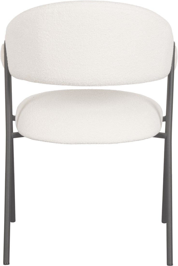 Deze prachtige en elegante stoel is gemaakt van de een warme bouclé stof op een strak metalen frame. Het zwarte frame, die de verbinding vormt tussen de rugleuning en zitting, maakt deze stoel extra bijzonder. De ronde rugleuning loopt door in de armleuningen. Naast het gave uiterlijk heeft de vergaderstoel Mae een super stabiele en comfortabele zit. Een leuke stoel met veel mogelijkheden. Varieer met kleur en maak er een speels geheel van.