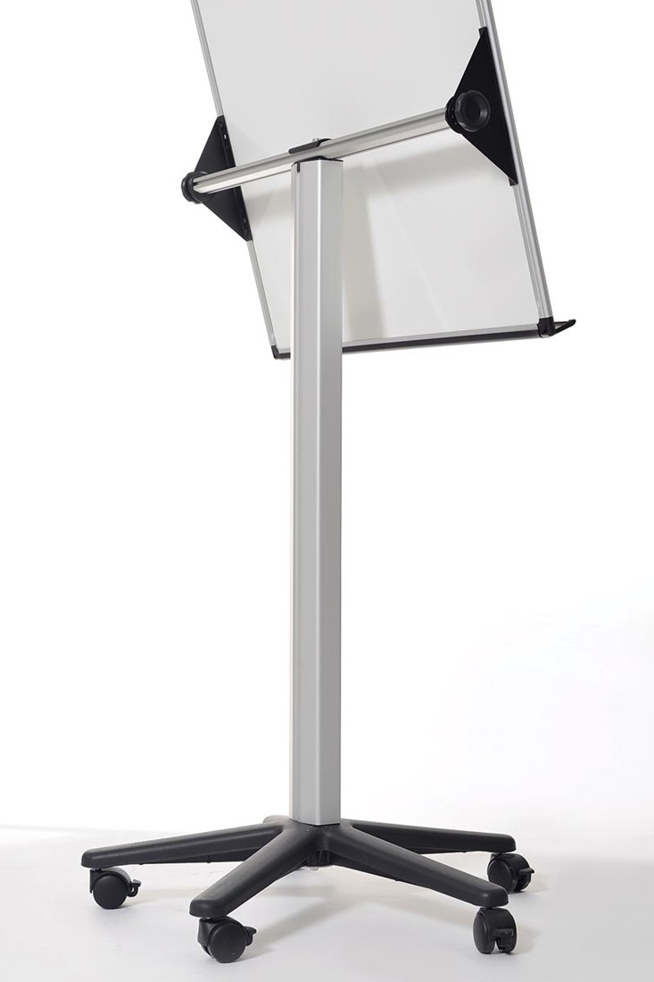 Melamine oppervlak. Droog uitwisbaar. Mobiel. Zeer licht en resistent. 80% gerecycleerd aluminium. In hoogte verstelbaar. Ft 70 x 100 cm.
