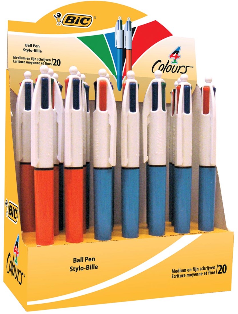 Artikelomschrijving Bic 4 Colours Original 4-kleurenbalpen, fijn en medium, klassieke inktkleuren, doos van 20 stuks