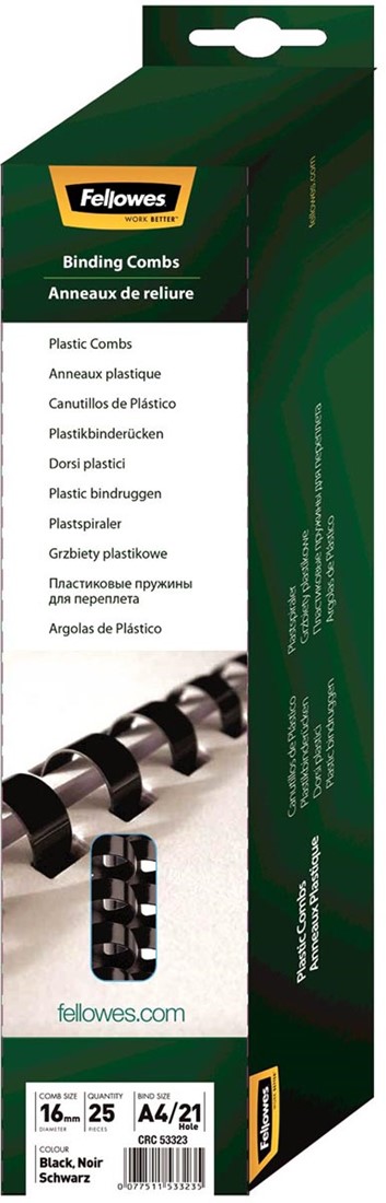 Artikelomschrijving Fellowes bindruggen, pak van 25 stuks, 16 mm, zwart