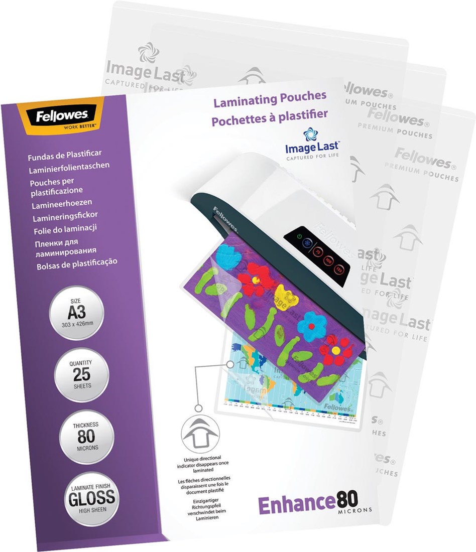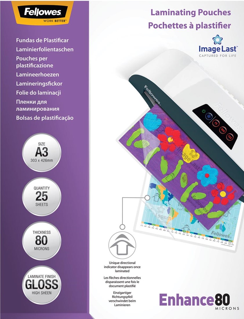 Artikelomschrijving Fellowes lamineerhoezen Enhance80 ft A3, 160 micron (2 x 80 micron), glanzend, pak van 25 stuks