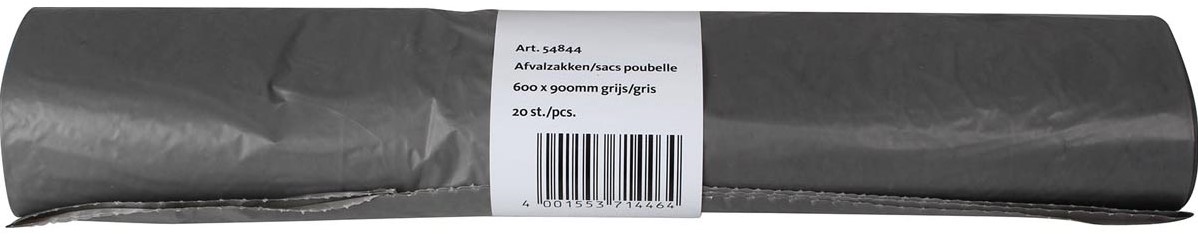 Vuilniszak 40 micron, ft 60 x 80 cm, 70 liter, grijs, rol van 20 stuks