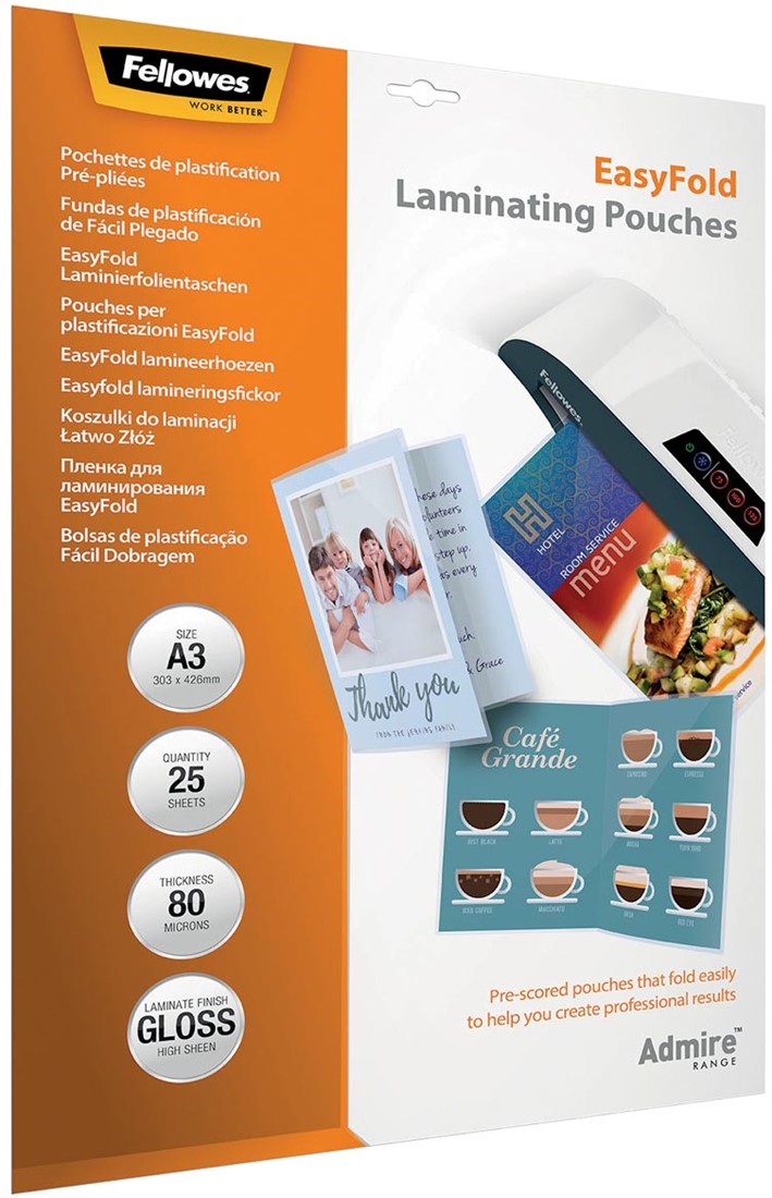 Stel een vraag over Fellowes lamineerhoes Admire Easyfold Enhance80 ft A3, 160 micron (2 x 80 micron), pak van 25 stuks