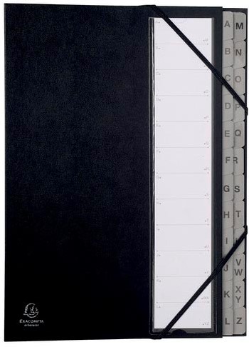 Stel een vraag over Exacompta sorteermap Ordonator met harde kaft, uitrekbare rug, 24 vakken A tot Z, zwart