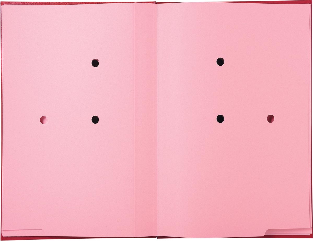 Geplastificeerde kaft met etikethouder op de voorkant. Binnenkant in roze, hard karton 300g/m2; perforatie op 3 punten in de compartimenten om te zien of er documenten in zitten. Uitrekbare harmonicarug. Verstevigde tabs aan de onderkant van de pagina's.