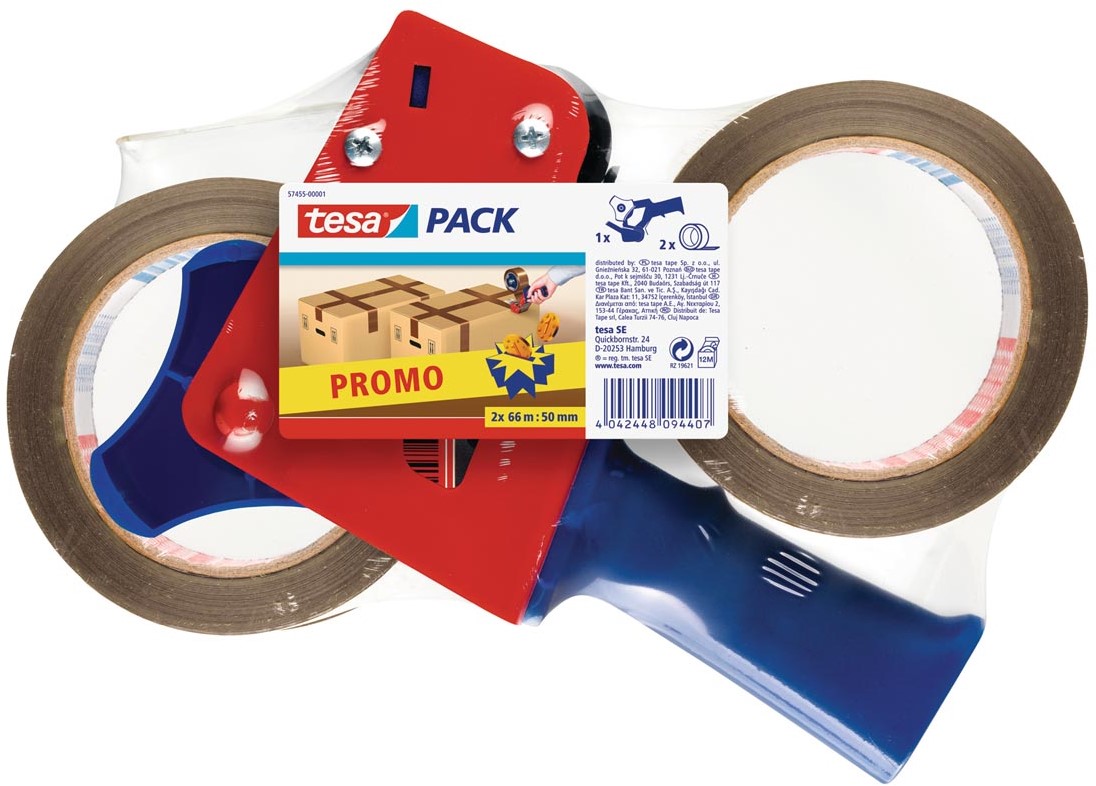 Accessoires Tesa afroller voor verpakkingsplakband van maximum 50 mm, inclusief 2 rollen PP tape ft 50 mm x 66 m