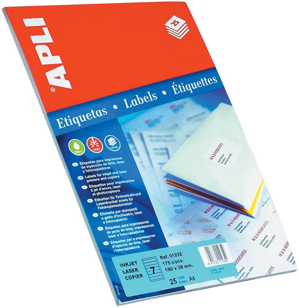 Artikelomschrijving Apli etiketten ft 105 x 37 mm (b x h), rechte hoeken, 400 stuks, 16 per blad (1214)